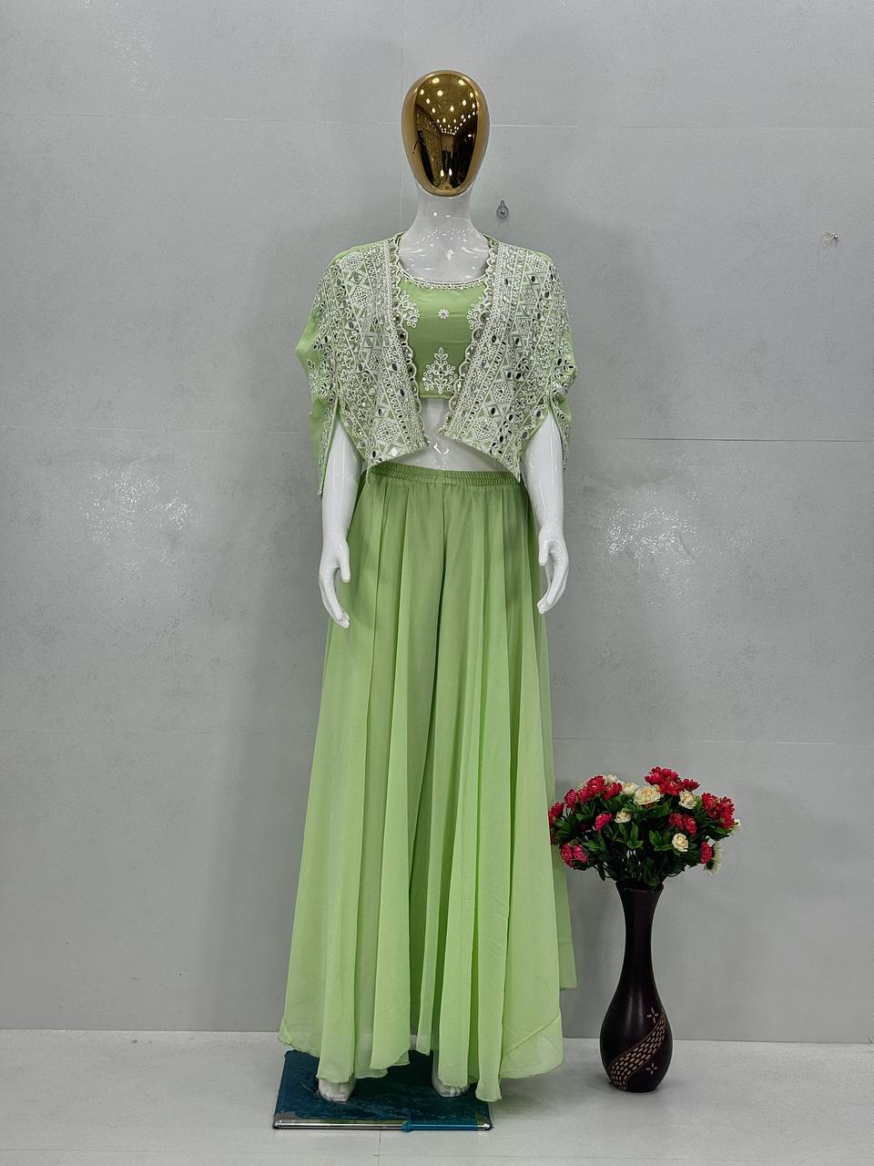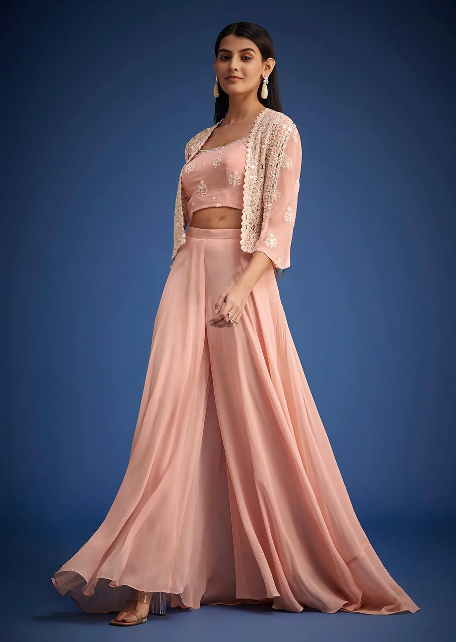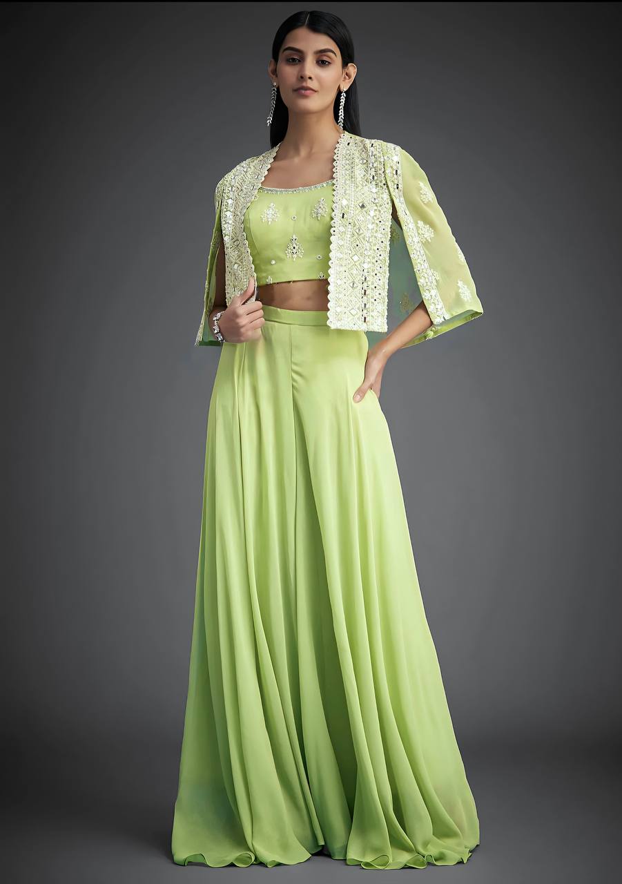 Stylish Pista Georgette Mirror Work Palazzo With Koti